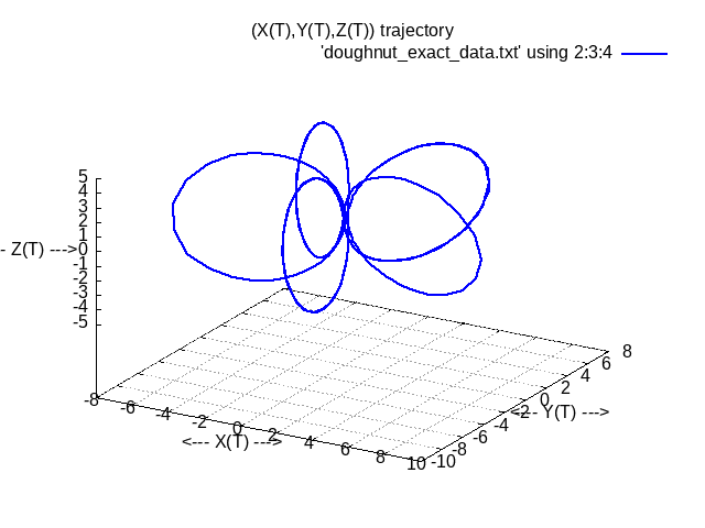 doughnut_exact, a C code which evaluates an exact solution of a system of ordinary differential equations (ODE) whose trajectories lie on a torus or doughnut, and for which an exact solution is known.
