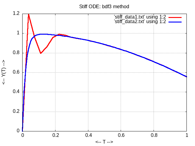 bdf3, a C++ code which solves one or more ordinary differential equations (ODE) using the (implicit) backward difference formula (BDF) of order 3, with a version of fsolve() handling the associated nonlinear equation, and using a fixed time step.