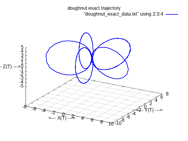 doughnut_exact, a Fortran90 code which evaluates an exact solution of a system of ordinary differential equations (ODE) whose trajectories lie on a torus or doughnut, and for which an exact solution is known.