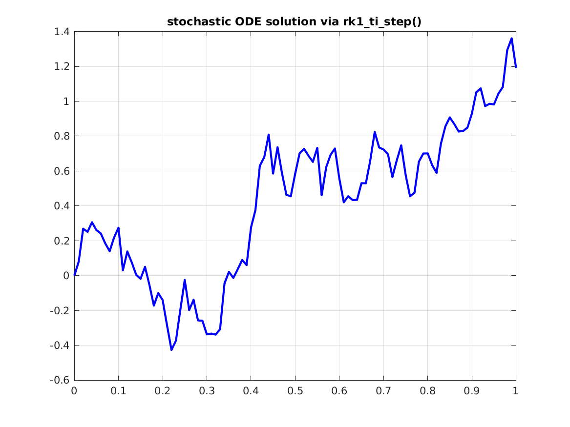 stochastic_rk_test, a MATLAB code which calls stochastic_rk(), which implements Runge-Kutta integration methods for stochastic differential equations.