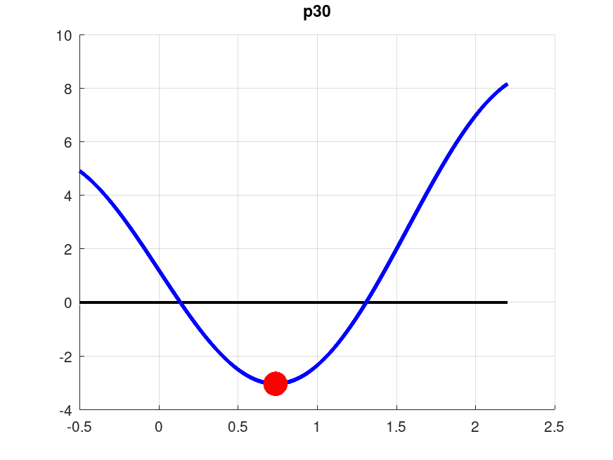 test_unimodal, an Octave code which defines a number of unimodal functions, each one a scalar valued function of a scalar argument. Over a specified interval [a,b], each function decreases to a minimum value and then increases. These functions are designed to test the efficiency of algorithms for locating the minimizing argument, such as bisection, golden search, or Brent's method.