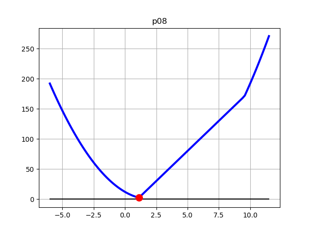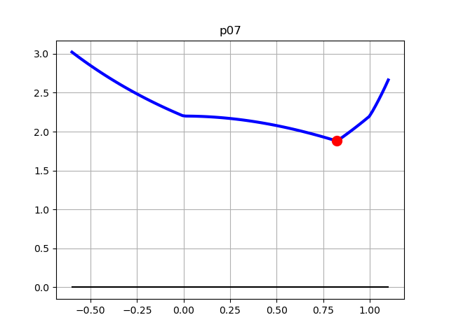test_unimodal, a Python code which defines a number of unimodal functions, each one a scalar valued function of a scalar argument. Over a specified interval [a,b], each function decreases to a minimum value and then increases. These functions are designed to test the efficiency of algorithms for locating the minimizing argument, such as bisection, golden search, or Brent's method.