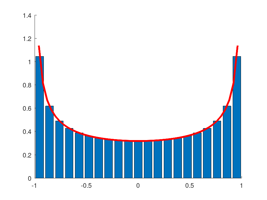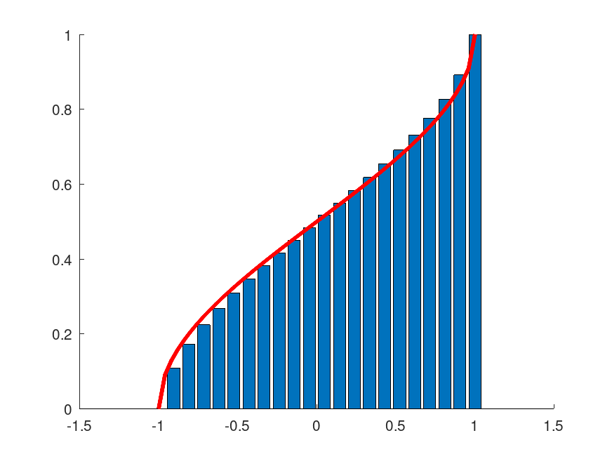 histogram_pdf_sample, an Octave code which demonstrates how sampling can be done by starting with the formula for a PDF, creating a histogram, constructing a histogram for the CDF, and then sampling.