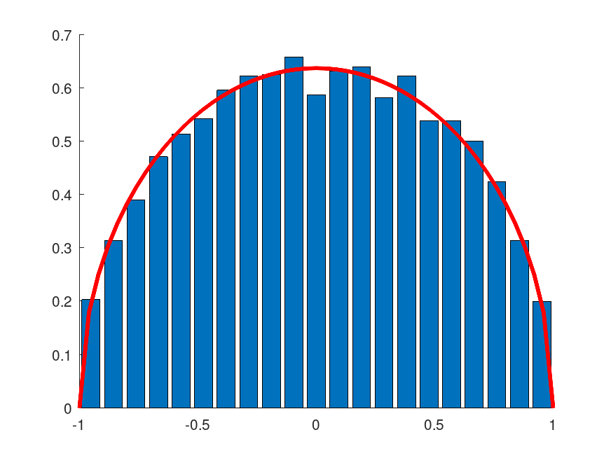 CHEBYSHEV2 is a test case for the PDF rho(x)=2*sqrt(1-x*x)/pi for x between -1 and +1.