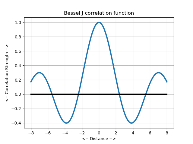 Because correlation functions model physical situations, it is usually the case that the correlation function will smoothly and steadily decrease to 0 with r, or that it will oscillate between positive and negative values, with an amplitude that is steadily decreasing. One of the most popular correlation functions is the gaussian correlation, which has many desirable statistical and mathematical properties.