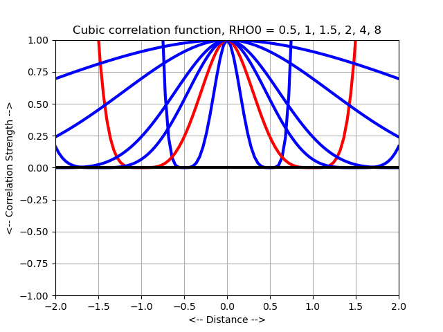 Most of the correlation functions considered here determine the correlation of two random values y(x1) and y(x2), depending only on distance, that is, on the norm ||x1-x2||, which we will denote by "r". Such correlation functions are called "stationary".