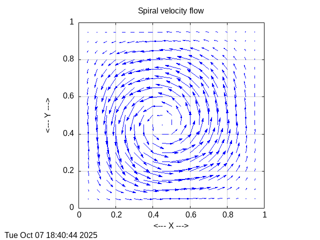 continuity_exact, a MATLAB code which computes a velocity vector field that satisfies the continuity equation, writing the data to a file that can be plotted by gnuplot().