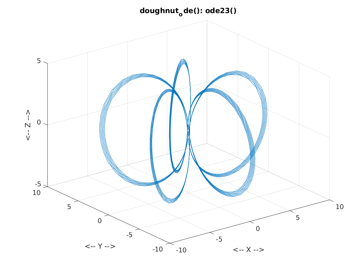 doughnut_ode_test a MATLAB code which calls doughnut_ode(), which sets up and solves a system of ordinary differential equations (ODE) whose trajectories lie on a torus or doughnut, and for which an exact solution is known.