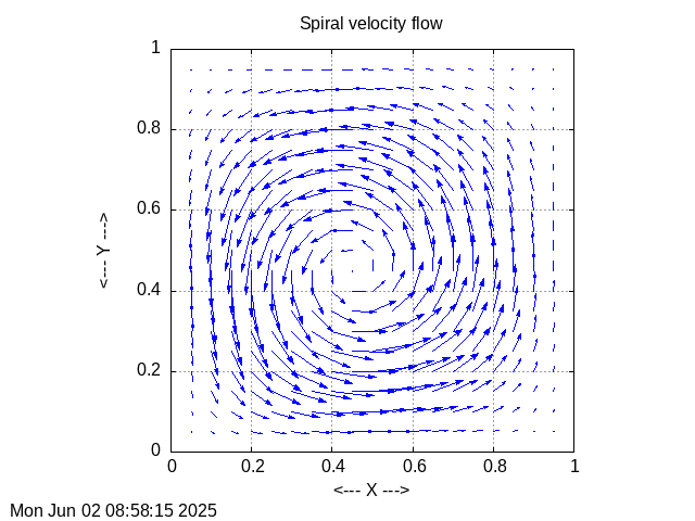 continuity_exact, an Octave code which computes a velocity vector field that satisfies the continuity equation, writing the data to a file that can be plotted by gnuplot.