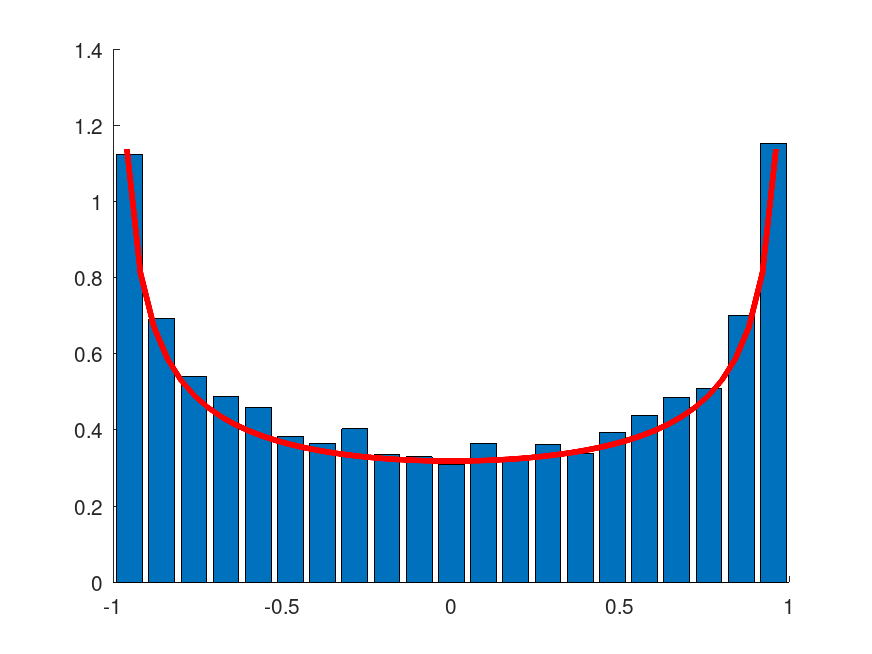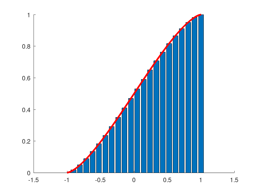 histogram_pdf_sample, an Octave code which demonstrates how sampling can be done by starting with the formula for a PDF, creating a histogram, constructing a histogram for the CDF, and then sampling.