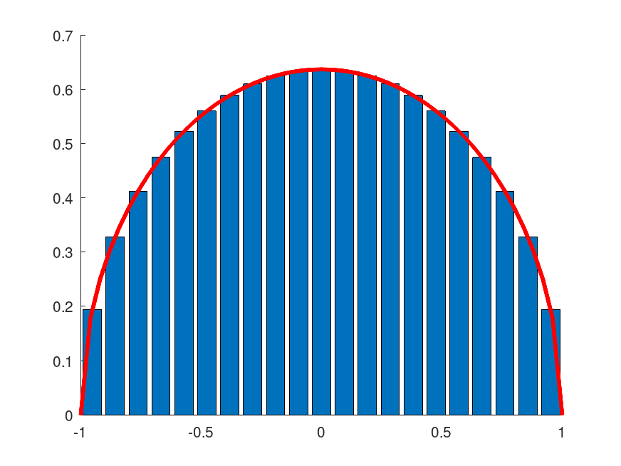 CHEBYSHEV2 is a test case for the PDF rho(x)=2*sqrt(1-x*x)/pi for x between -1 and +1.