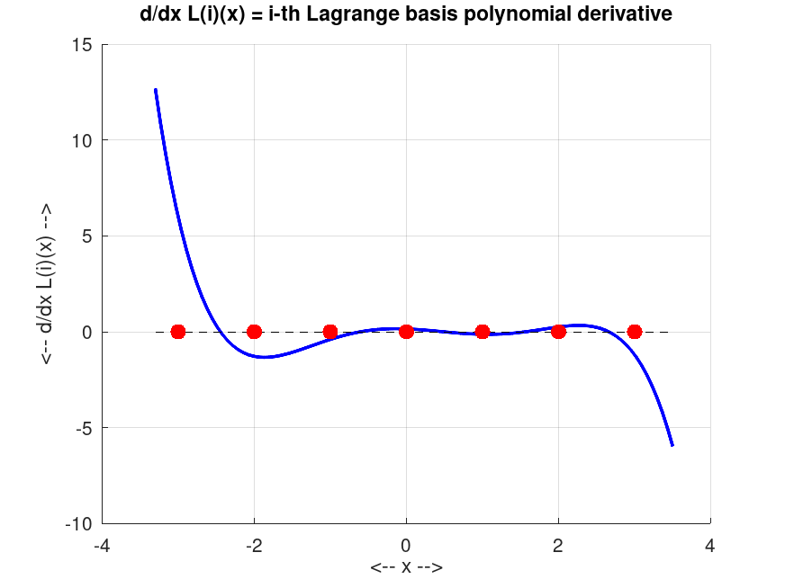 lagrange, an Octave code which evaluates any Lagrange basis polynomial L(i)(x), its antiderivative, or its first or second derivatives. Sample plots are made.