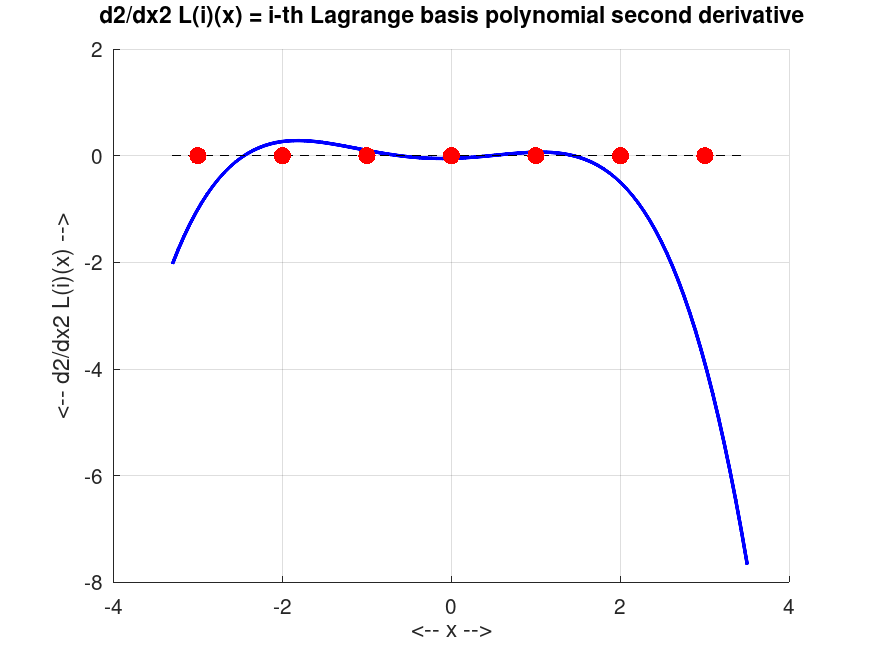lagrange_test, an Octave code which calls lagrange(), which evaluates any Lagrange basis polynomial L(i)(x), its antiderivative, or its first or second derivatives. Sample plots are made.