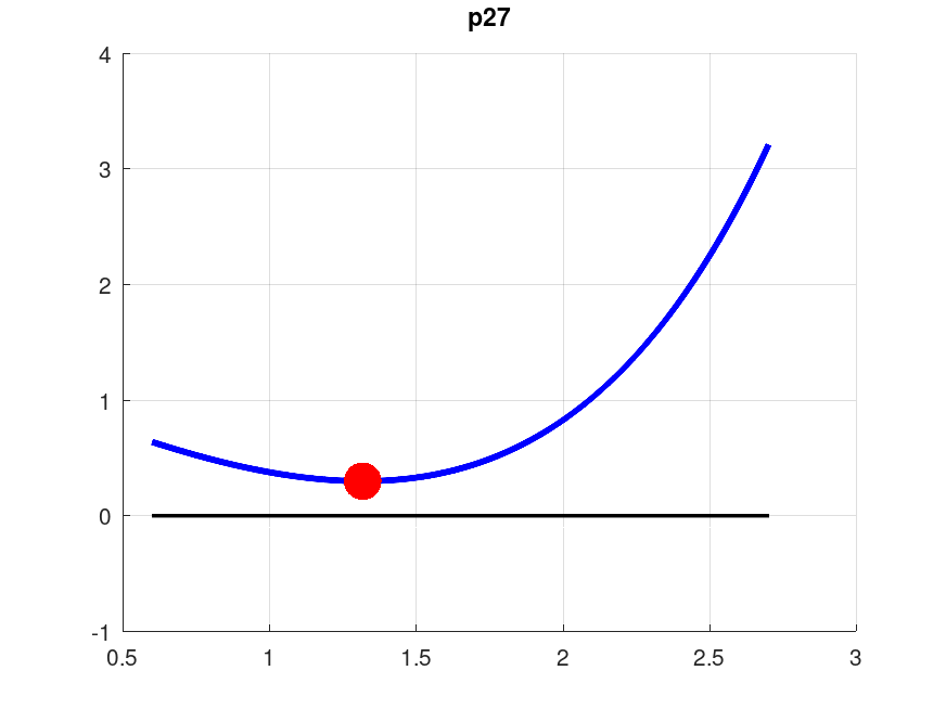 test_unimodal, an Octave code which defines a number of unimodal functions, each one a scalar valued function of a scalar argument. Over a specified interval [a,b], each function decreases to a minimum value and then increases. These functions are designed to test the efficiency of algorithms for locating the minimizing argument, such as bisection, golden search, or Brent's method.