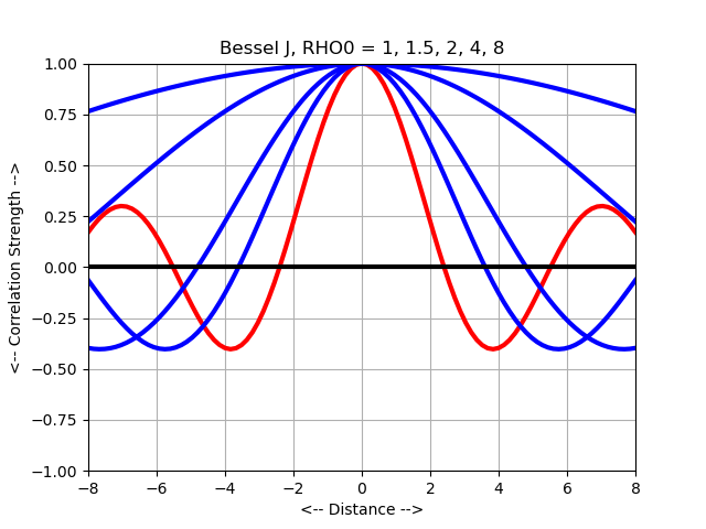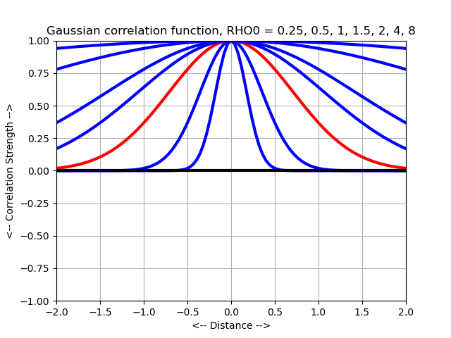 Because correlation functions model physical situations, it is usually the case that the correlation function will smoothly and steadily decrease to 0 with r, or that it will oscillate between positive and negative values, with an amplitude that is steadily decreasing. One of the most popular correlation functions is the gaussian correlation, which has many desirable statistical and mathematical properties.