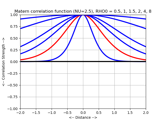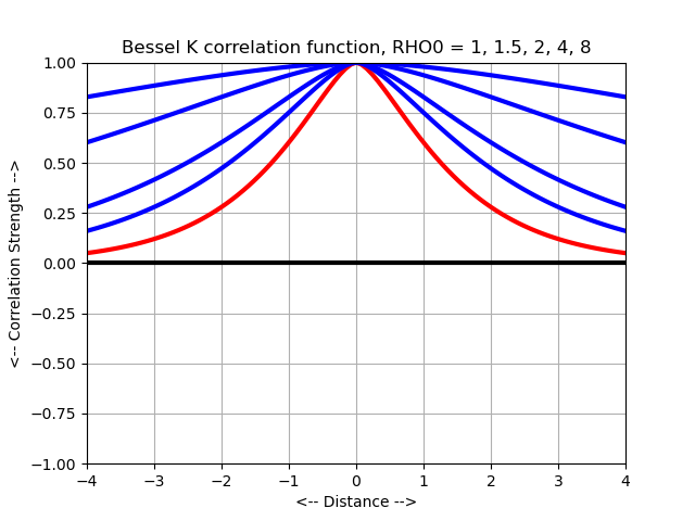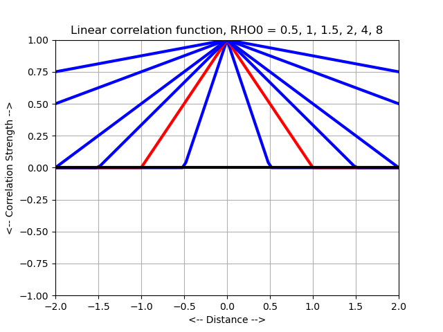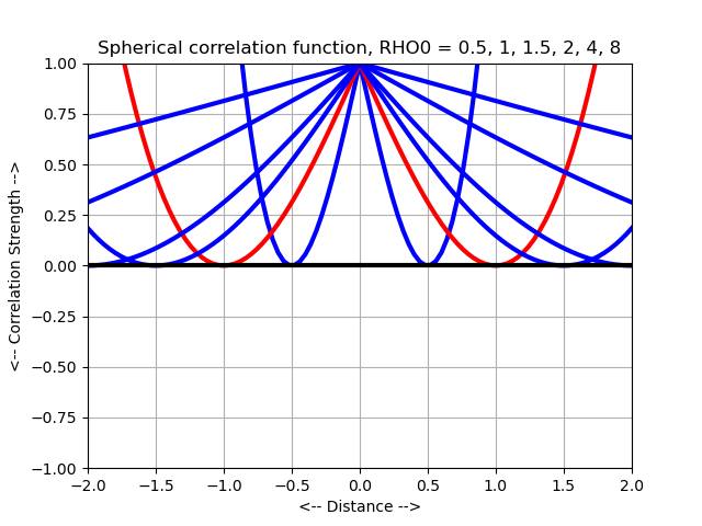 Most of the correlation functions considered here determine the correlation of two random values y(x1) and y(x2), depending only on distance, that is, on the norm ||x1-x2||, which we will denote by "r". Such correlation functions are called "stationary".