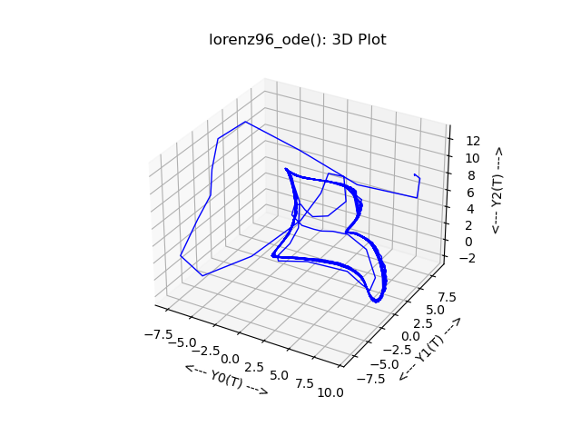 lorenz96_ode, a Python code which sets up and solves a system of ordinary differential equations (ODE) devised by Edward Lorenz, as a test of predictability for data assimilation applications.